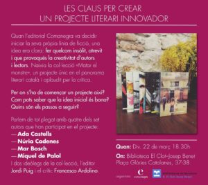 Quan l’editorial Comanegra va decidir d’iniciar la seva línia de ficció, es va plantejar de fer-ho des d’alguna cosa insòlita, atrevida i que provoqués la creativitat d’autors i lectors. I va néixer ‘Matar el monstre’, un calidoscopi de Barcelona, un homenatge al Frankenstein de la Mary Shelley, un projecte únic del qual parlarem a la Biblioteca del Clot – Josep Benet.