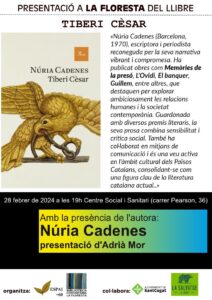 Adrià Mor acompanyarà Núria Cadenes en aquesta presentació de la novel·la.