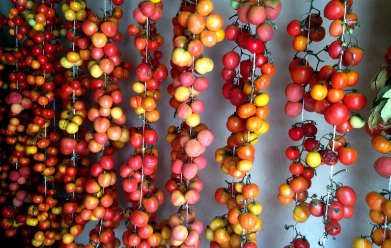 (No hi ha tomàquets a l’hivern, però dels de la fotografia que il·lustra l’article, sí. Tal com explica la nota de Wikimedia Commons, aquests són “enfilalls de tomàquets de penjar, varietats especials per a elaborar el pa amb tomàquet durant els mesos d’hivern”. I en un peu de foto, l’Isidre Blanc, que n’és l’autor, condensa tot això que he volgut dir avui. Quines coses.)