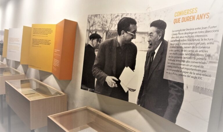 I d’aquí, d’aquesta dialèctica parteix, condensadament, impecablement, l’exposició que du per títol “Joan Fuster – Josep Pla: una conversa infinita”, que ha produït la Fundació Josep Pla, que ha comissariat Antoni Martí Monterde, que ha coordinat Francesc Montero i que ara, del bracet d’Acció Cultural, s’ha instal·lat a l’OctubreCCC de València. I sí: escric un article de propaganda. Perquè, si podeu, hi aneu. Perquè no us perdeu, tampoc, el catàleg que l’aplega i que la completa. Perquè és que la relació de dos personatges aparentment tan diferents, de generacions diferents, d’ideologies diferents, va ser un punt clau en la nostra història literària i extraliterària; de dos personatges de la dimensió que tenien Pla i Fuster i que, en trobar-se, es van reconèixer. En un cert sentiment antimetafísic, en la mirada irònica, en la pràctica escèptica, en el compromís de país.